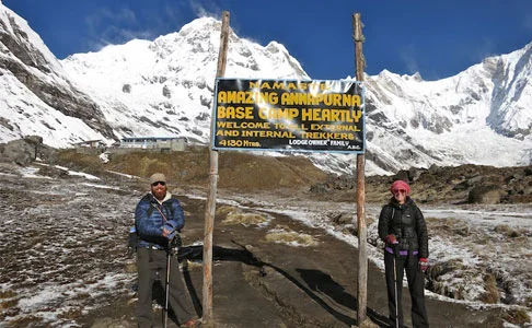 Another short day today, as it is a fairly gentle ascent from our camp to Annapurna South Base Camp, and a distance of only about 4 kilometers or 2½ miles. Increasingly impressive views reward us for our efforts as we climb the last steep section before reaching the basecamp area. The afternoon is free to relax and admire one of the most stunning mountain amphitheatres in the Himalaya. Optionally, if conditions and route permit there's a chance to walk out towards the Annapurna Base Camp. (4130m).